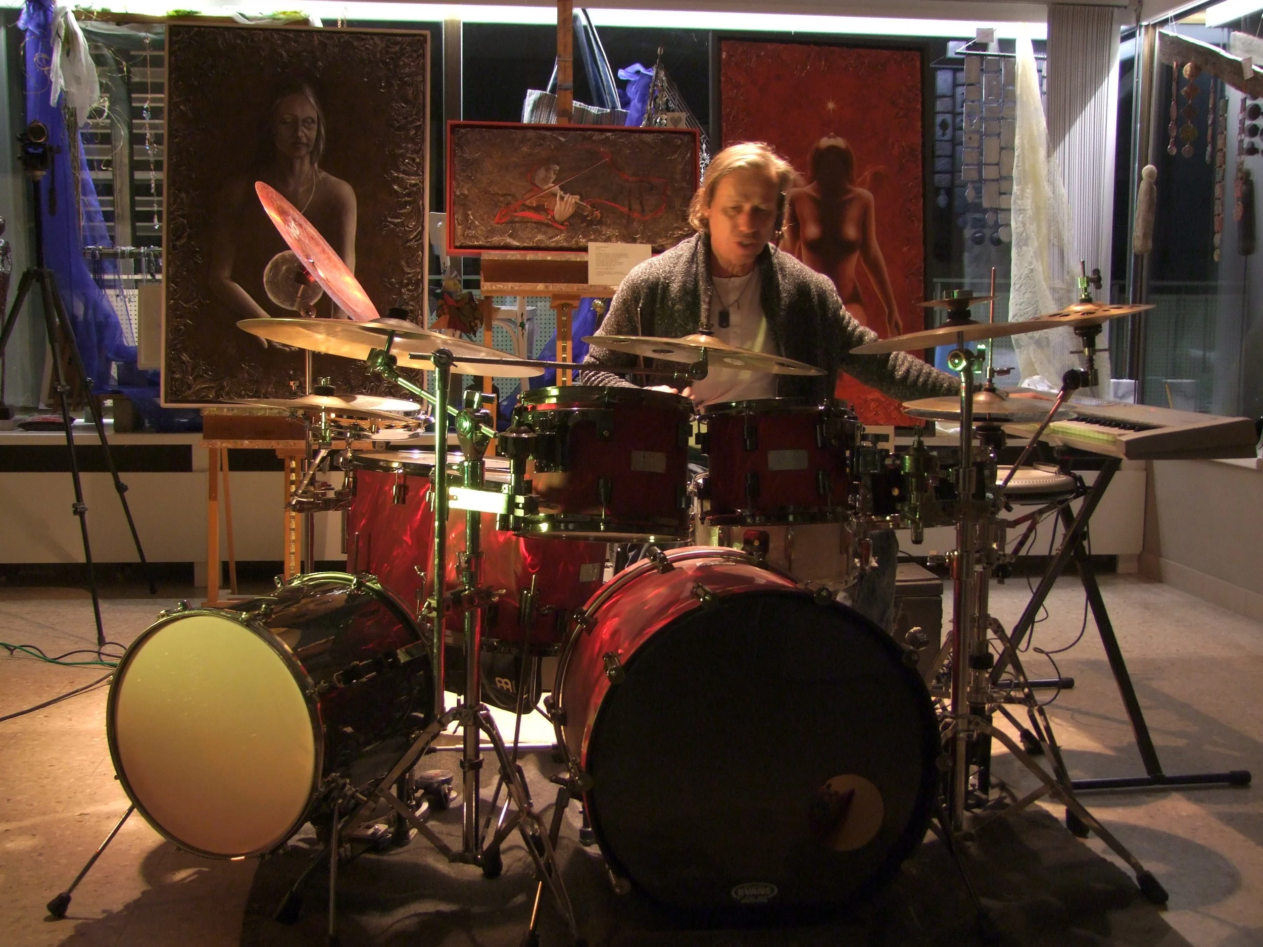 "DANKE für diesen wunderbaren Abend bei euch“ so verabschiedete sich gestern Abend Ernst Grieshofer von den Besuchern seiner improVISION zu den Werken von AKTRICE im KunstRAUM Obervellach. Der Musiker, der u.a. mit den Rollings Stones, Deep Purple, Elton John und auch mit den Philharmonikern zusammen arbeitet, setzte sich vor dem Konzert mit dem Themen der Bilder auseinander, suchte sich den Rhythmus dazu und versuchte im Konzertverlauf die unterschiedlichen Energien auf zunehmen und setzte dabei seine Empfindung musikalisch um. Nach dem Konzert gab es im Grillkunst Restaurant eine Foto- und Autogrammstunde, wo die Konzertbesucher mit dem Musiker gemütlich zusammen sitzen und sich mit ihm unterhalten konnten. Dabei erklärte Ernst Grieshofer auch, dass bei so einem Konzert 30% Vorbereitung – Auseinandersetzung mit dem Thema im Vorfeld - und ca. 70% Improvision im Moment des Geschehens sind. Es war eine unglaublich berührende Darbietung des Ausnahmemusikers, den die Besucher am Ende mit „standing ovation“ verabschiedeten. Herzlichen DANK an alle Besucher, Sponsoren und an ALLE oft unscheinbaren "Helferlein" im Hintergrund, die immer wieder ehrenamtlich dazu beitragen, dass dies alles überhaupt machbar ist