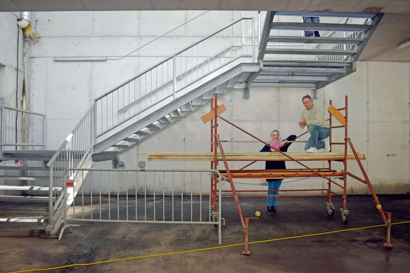 Im Mai 2024 verwandelten Daniela Löh und Gregor Wosik die Wände am Eingang der Stollenbahn in ein monumentales Kunstwerk, das sich über zwei Ebenen und das Stiegenhaus erstreckt. Die Darstellung gleicht einem Blick aus einer Höhle hinaus in die Weite: auf den majestätischen Gletscher, schneebedeckte Gipfel und glitzernde Eislandschaften. Im Zentrum der Szenerie thront ein Steinbock auf einem Felsen, während ein Bartgeier mit weit ausgebreiteten Schwingen zum Flug ansetzt – zwei kraftvolle Symbolfiguren des Nationalparks Hohe Tauern, die für Freiheit, Stärke und die einzigartige Artenvielfalt dieser Region stehen. Bäche und Flüsse durchziehen das Bild als Sinnbild für den Reichtum an kristallklarem Trinkwasser, der die Tauern prägt. Inmitten dieser Landschaft erscheint ein goldenes Mädchen im Tauernwind. Sie steht auf einem funkelnden Kristall, der tief in das Innere der Erde zu strahlen scheint – eine poetische Erinnerung an die glanzvolle Bergbau- und Kristallgeschichte der Region. Die Berge erzählen von verborgenen Schätzen: von glitzernden Kristallen, die hier gefunden wurden, und von goldenen Adern, die einst Wohlstand und Hoffnung in die Täler brachten.
