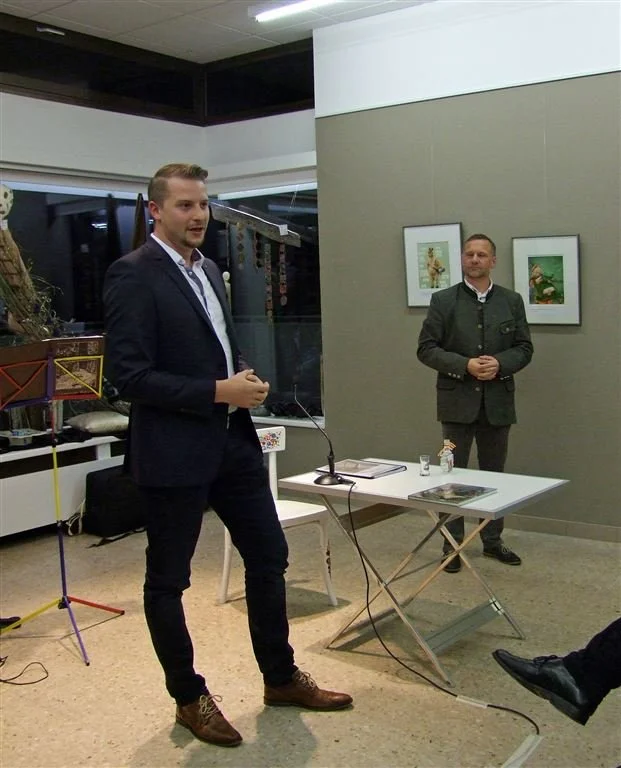 Der Mallnitzer Bürgermeister Günther Novak, der Landeshauptmann Peter Kaiser vertrat, sprach die Grußworte und beeilte sich, einen „Platzhirschen“ zu ergattern: „Denn meine Frau hat gesagt, ohne Buch darf ich nicht heimkommen!“ Unter den vielen Gästen waren auch Gemeindevorstand Martin Stocker, Altbürgermeister Willi Pacher mit Gattin Lisi, RKM und SSB Chef Hans Winkler mit Gattin Astrid, Bauingenieur Harald Lengfellner mit Gattin sowie zahlreiche Künstlerinnen und Künstler. Aus Wien angereist ist Schmuckdesignerin Gertie Gold, die u.a. Lesezeichen mit Jagdmotiven präsentierte.