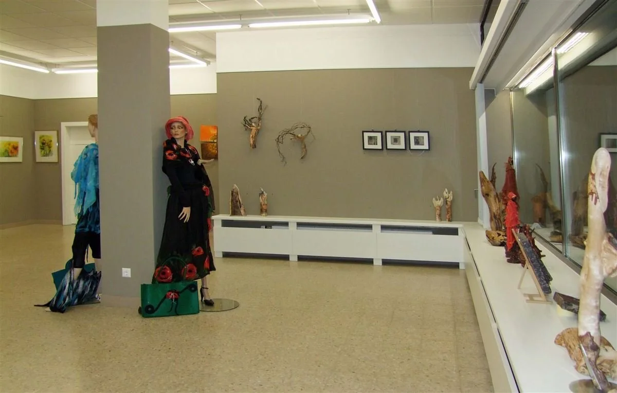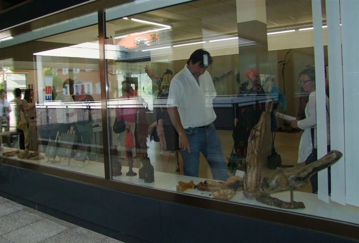 Skulpturen in Verbindung mit Stein, Holz, Glas und verschiedenen Metallen.