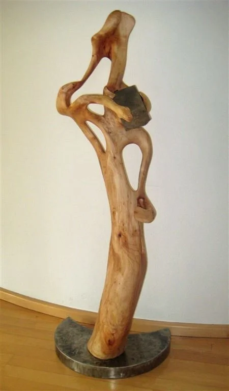 Beim Hausbau vor vielen Jahren faszinierte ihn die Kombination der verschiedenen Materialien so, dass er versuchte Wurzelholz, Stein und Stahl kreativ zu bearbeiten. Er begann zu schnitzen, zu schleifen und entwickelte eine eigene Schweißtechnik. Es ist ihm wichtig die Schönheit aus dem Material herauszuarbeiten, sichtbar werden zu lassen, aber die Grundform vor allem bei Holzwurzeln nicht zu verändern.