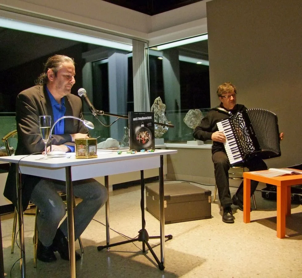 ent(z)weihnachtet ist mehr als eine Sammlung von Geschichten. Die erste BUCH13 Anthologie ist ein repräsentativer Querschnitt und ein kräftiges Lebenszeichen Kärntner Literatinnen und Literaten. So präsentierten Michael Maicher, Gerhard Benigni, Mary Mischitz und Gerald Eschenauer vor vollen Galerieräumlichkeiten "unbesinnliche Weihnachtsgeschichten" inmitten einer außergewöhnlichen Krippenlandschaft. Musikalische Unterstützung erhielten sie dabei von Satiriker Jakob Pernull, der von "Knocking on heavens door" bis zum Kärntner Lied Variabilität zeigte. Viele Freunde und Kulturbegeisterte sind gekommen. Herzlichen Dank an Edith und Max Lesnik. Am Abend gesichtet Lektorin Karin Gilmore, Gabriele Eisank, Eva Granica, Apotheker Helmut und Birgith Höhr. Helga Schreiner. Danke dem Team von BUCH13 & Julia Jank für den Buchverkauf. Literatur lebt ...